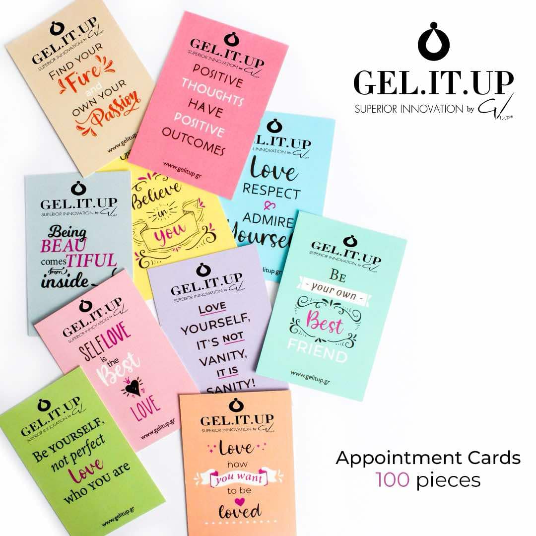 GEL.IT.UP by GIUP® Κάρτες για ραντεβού. Στην πίσω όψη της κάρτας υπάρχει το περιθώριο να αναγράψετε το επόμενο ραντεβού της πελάτισσας (ημέρα και ώρα).